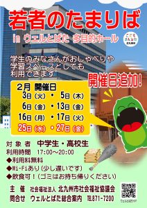戸畑駅南口複合公共施設「ウェルとばた」の多目的ホールを学生(中学生・高校生など)が 自由に集える空間として、無料開放しま […]