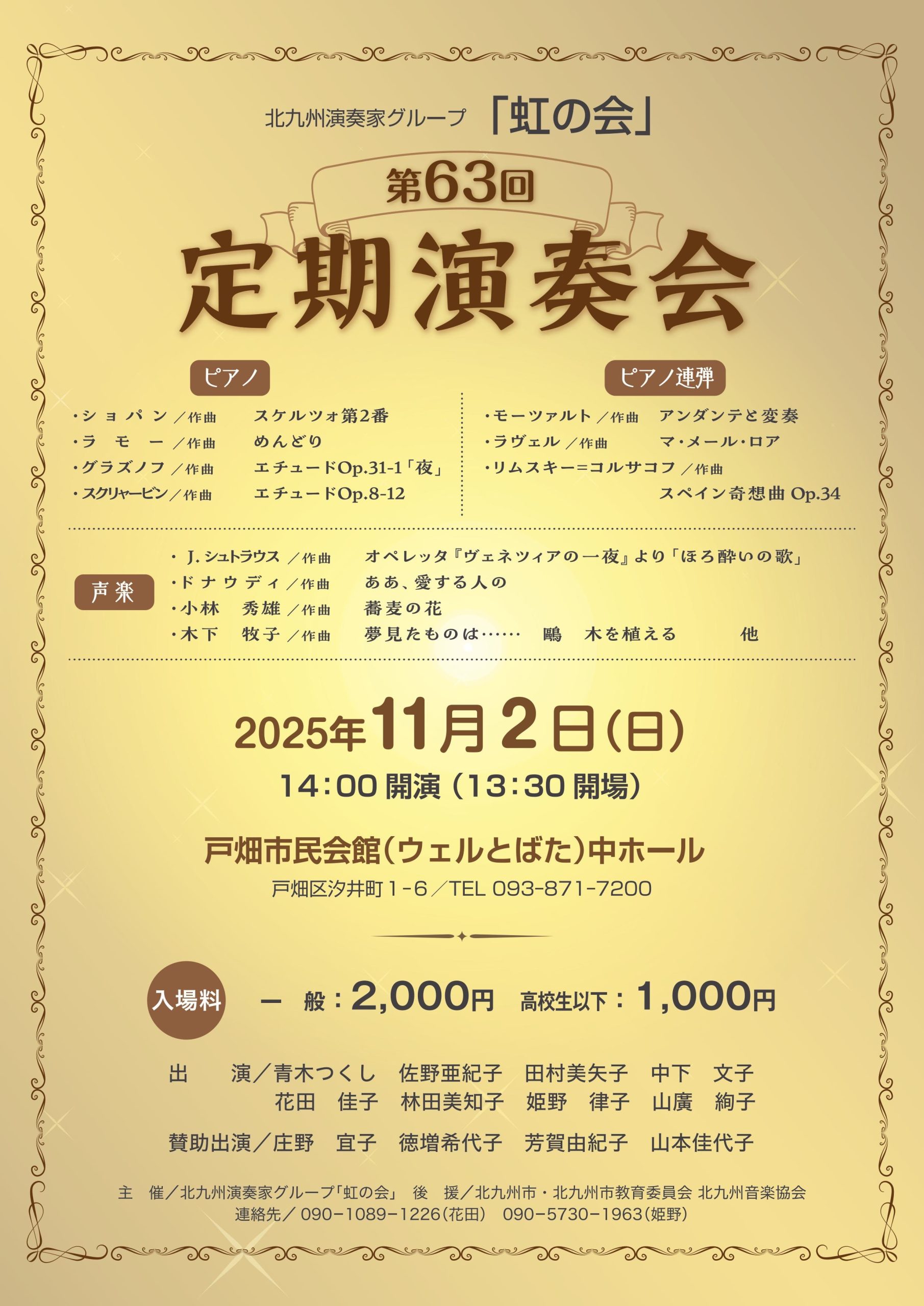 イベント名 北九州家演奏家グループ「虹の会」 第63回定期演奏会