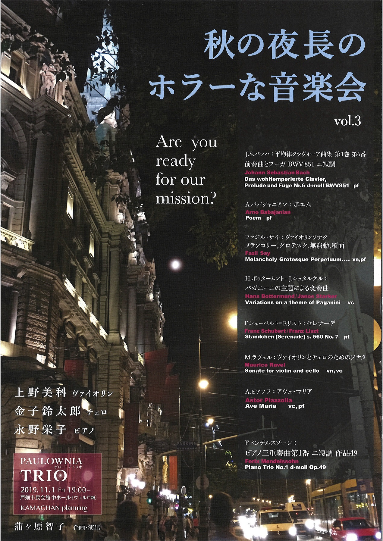 | イベント名 | 秋の夜長のホラーな音楽会 vol.3 |