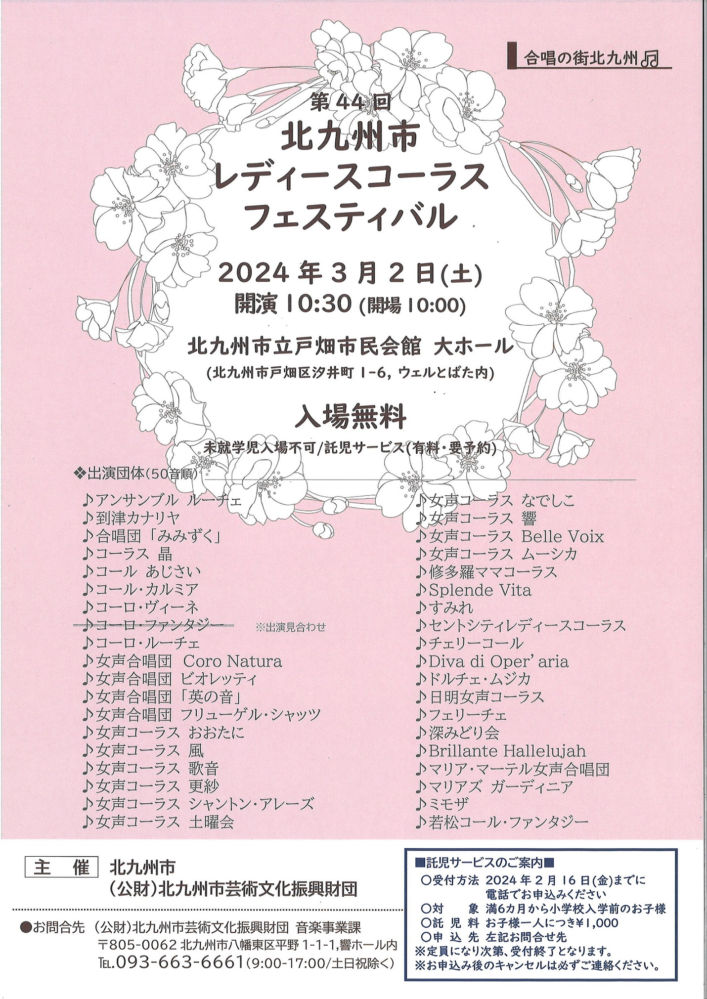 | イベント名 | 第44回 北九州市レディースコーラスフェスティバル |