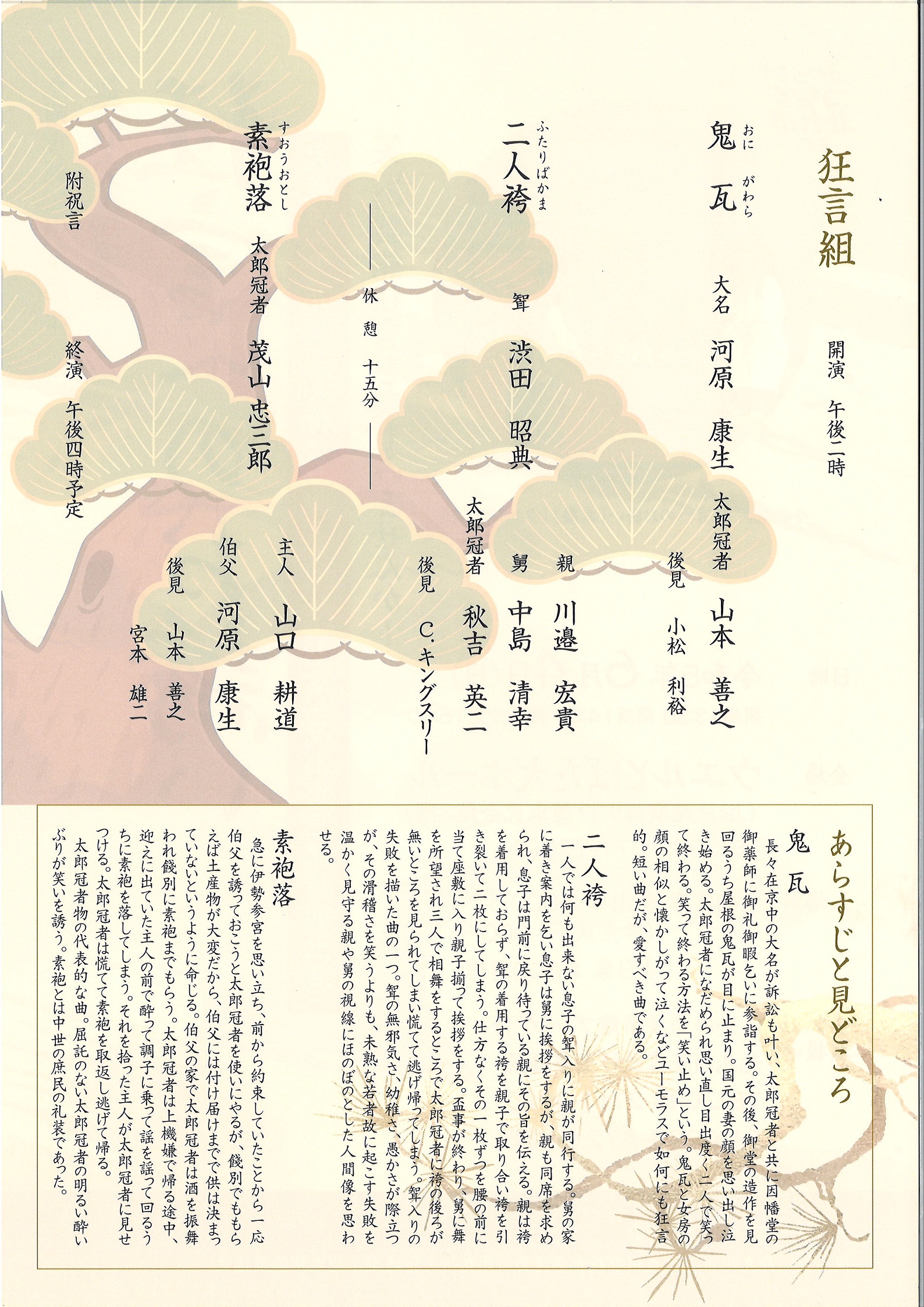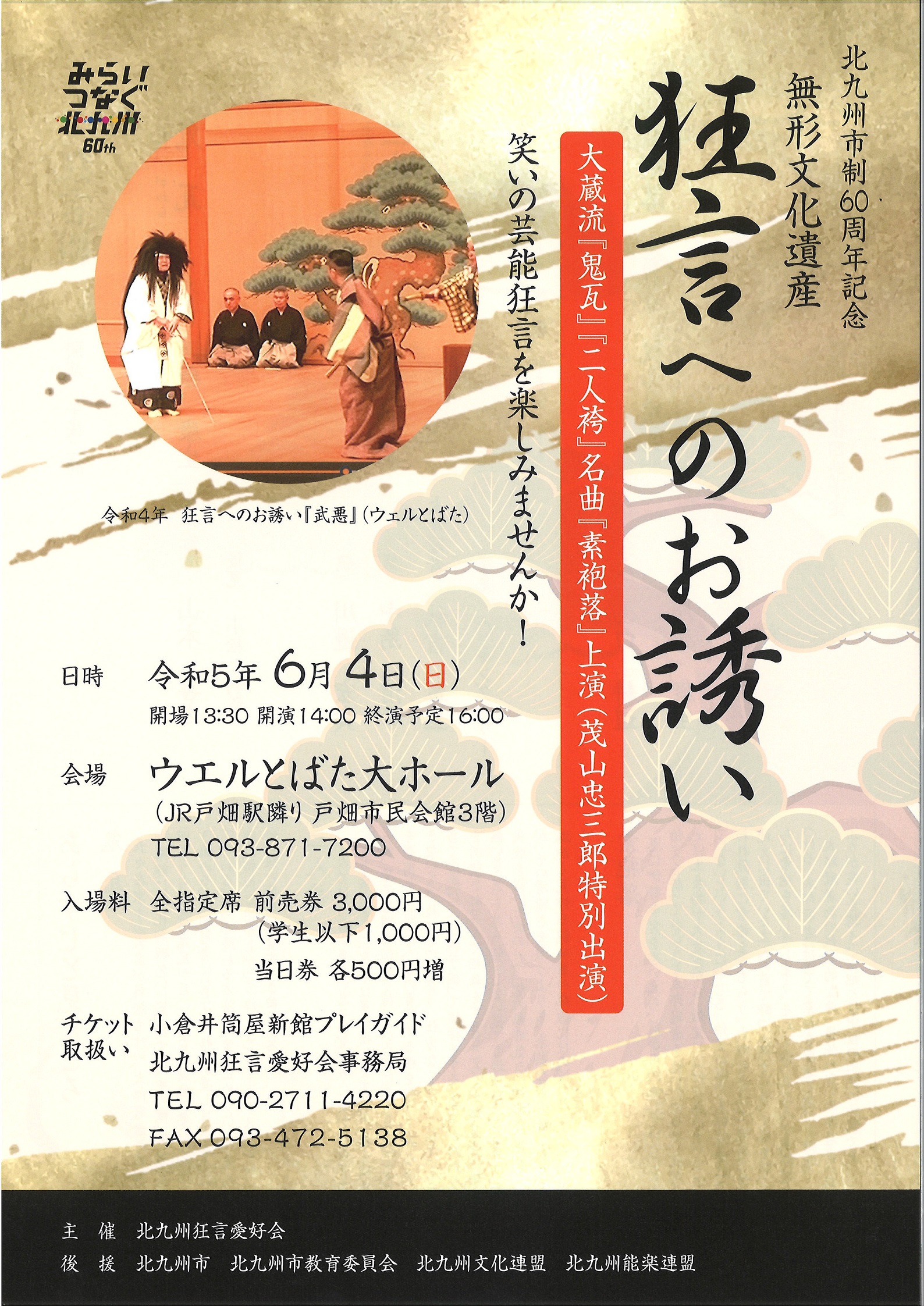 | イベント名 | 無形文化遺産 狂言へのお誘い |