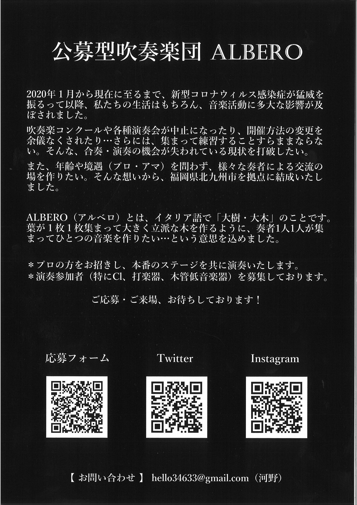 | お問合せ | 公募型吹奏楽団ALBERO |