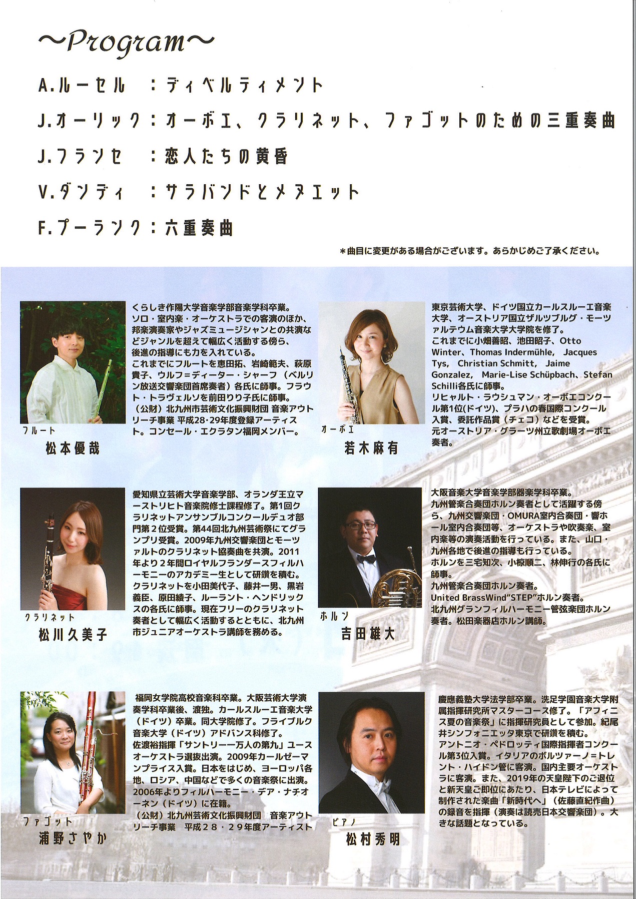 | イベント名 | Le Sextuor du Printemps ~フランス音楽の春~ |