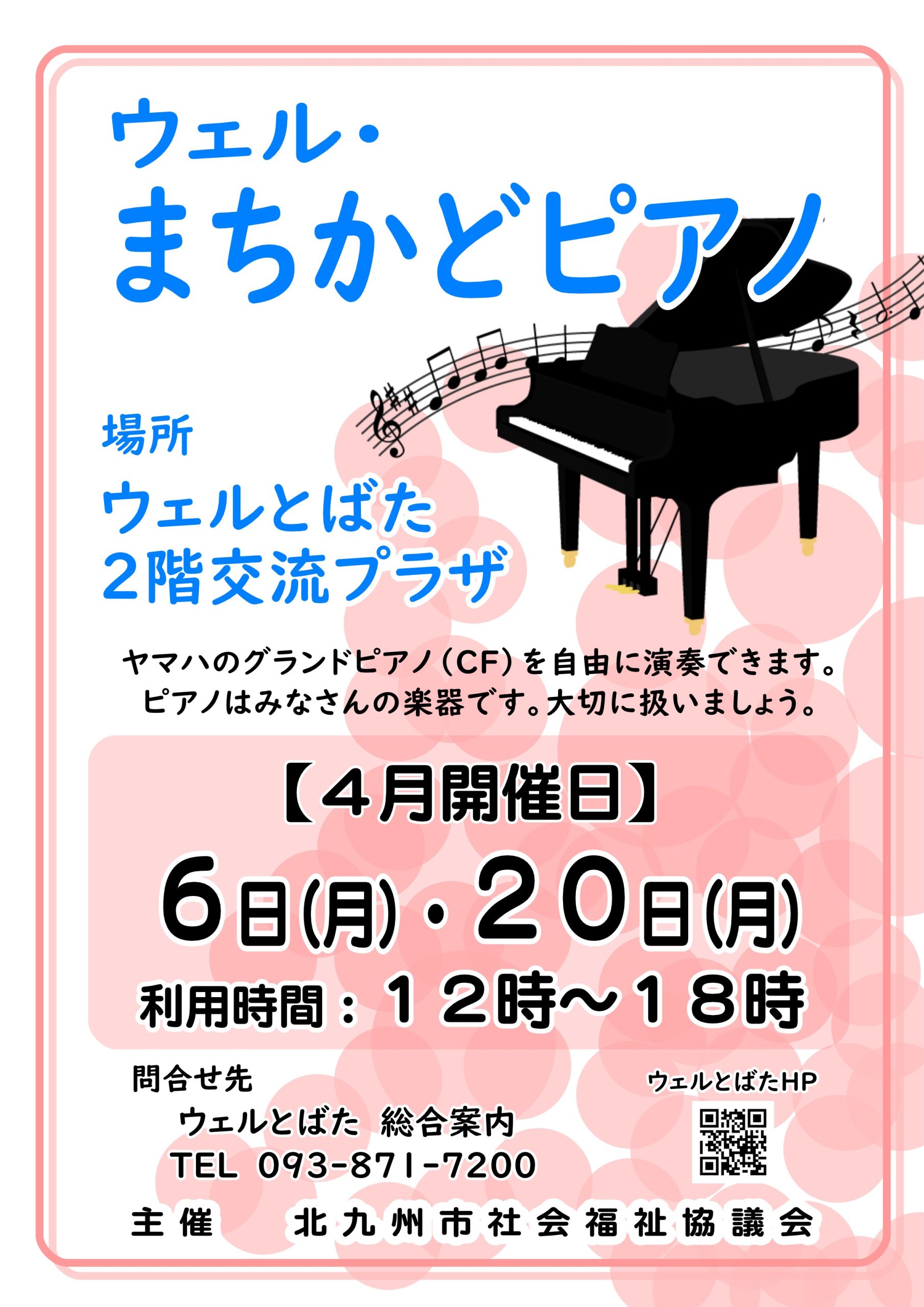 件名【令和8年度 ウェル・まちかどピアノ(4月)のご案内】