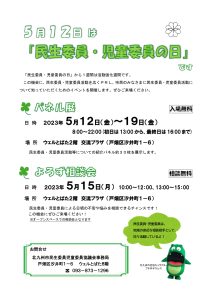 5月12日「民生委員・児童委員の日」に合わせて、民生委員・児童委員活動についてのパネル展と、よろず相談会を開催いたします。