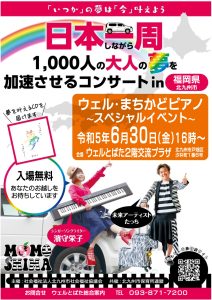 「ウェル・まちかどピアノ」の拡大版として、「日本一周しながら1,000人の大人の夢を加速させるプロジェクト」を実施している「ももしま」のお二方をお招きし、コンサートやワークを行います。