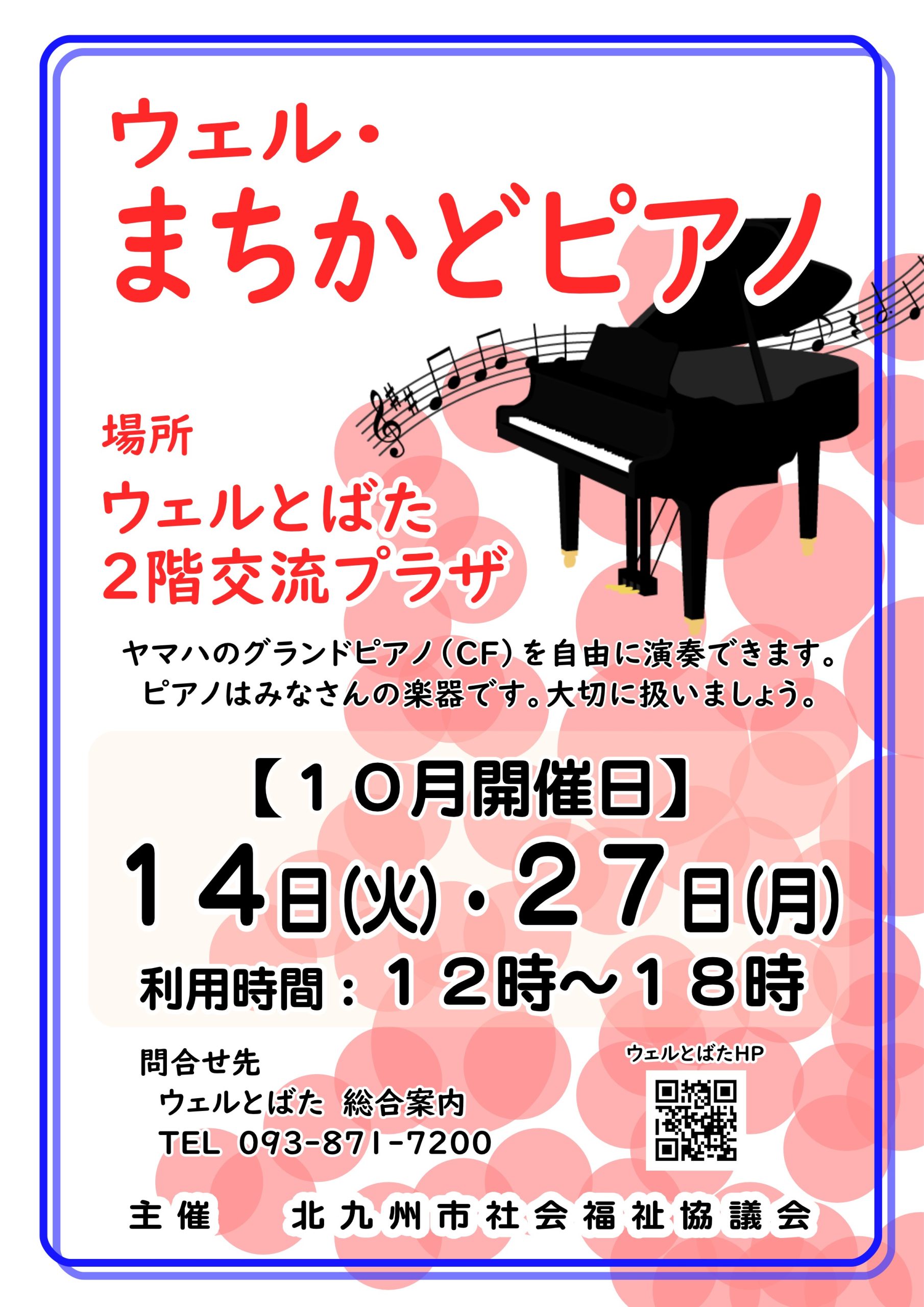 件名【令和7年度 ウェル・まちかどピアノ(10月)のご案内】