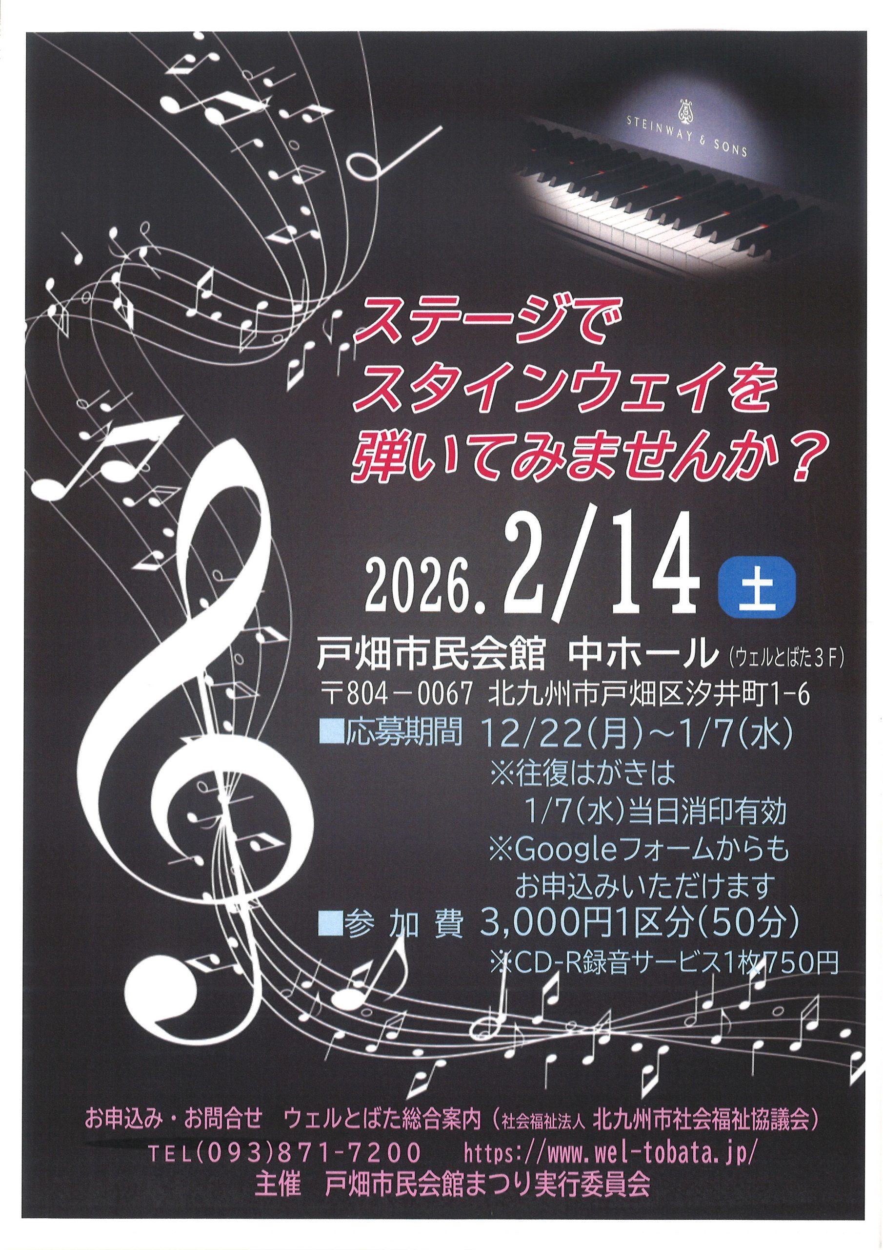 件名【「ステージでスタインウェイを弾いてみませんか?」開催のご案内】